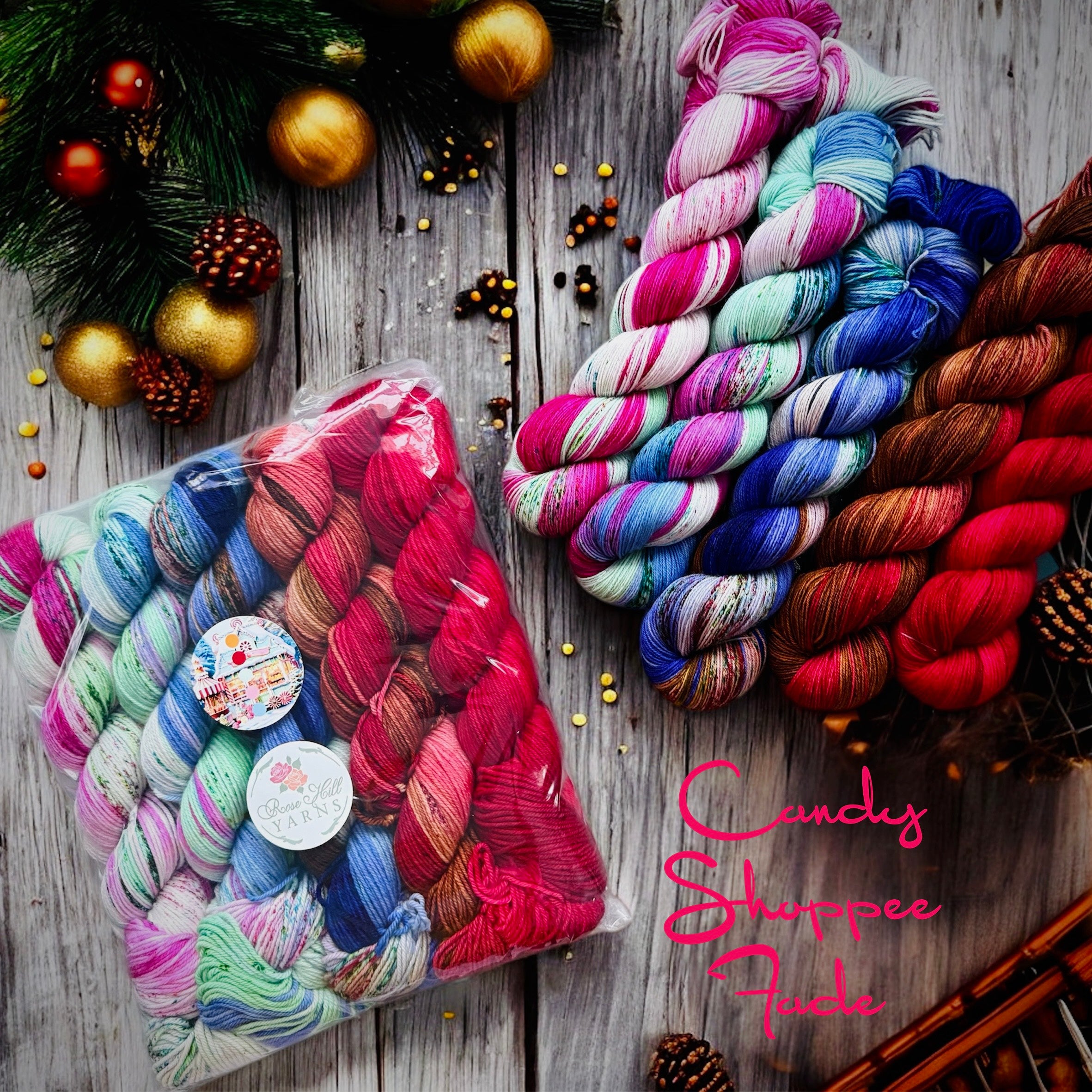 Fingering Weight Minis made with 75% superwash merino and 25% Nylon 5 @ (92 yards per 20g skein), It also has excellent stitch definition.