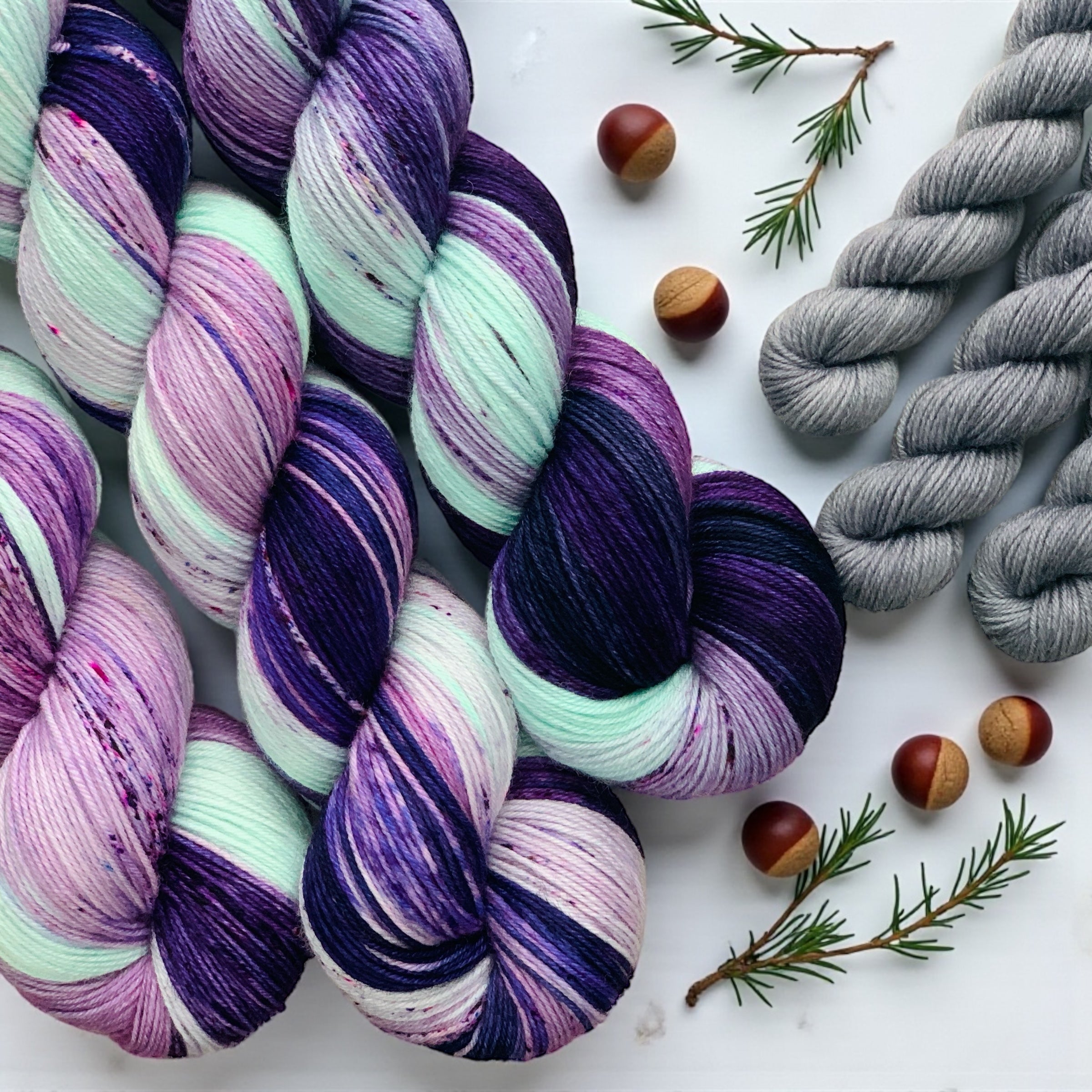 Super soft DK weight yarn made from 75% superwash merino and 25% nylon. An excellent workhorse yarn, with a plentiful yardage (245 yards per 100g skein), ( 49 yard per 20g mini). it also has excellent stitch definition