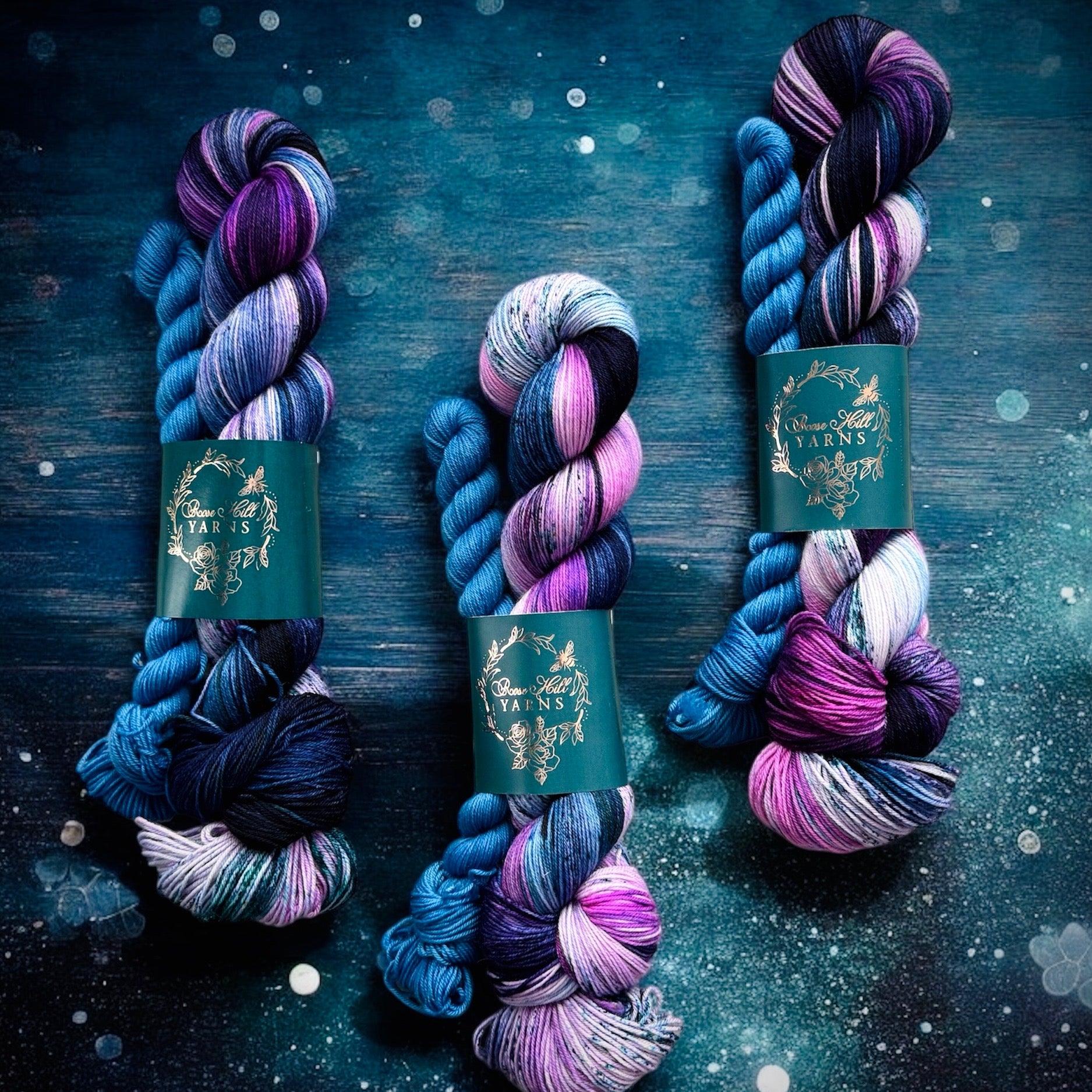 Super soft Fingering sock yarn made from 75% superwash merino 25% Nylon. An excellent workhorse yarn, with a plentiful yardage for a pair of socks (463 yards per 100g skein), (92 yards per 20g mini) it also has excellent stitch definition.