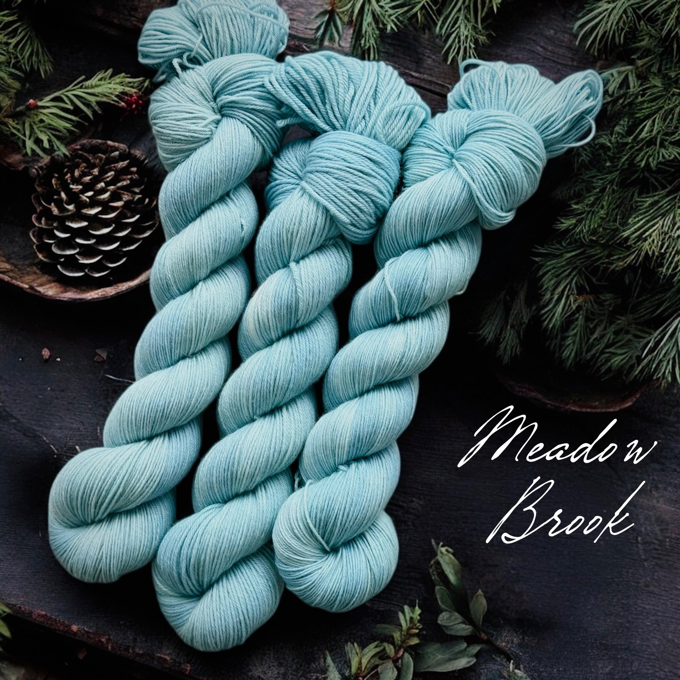 Super soft Fingering sock yarn made from 75% superwash merino 25% Nylon. An excellent workhorse yarn, with a plentiful yardage for a pair of socks (463 yards per 100g skein), it also has excellent stitch definition.