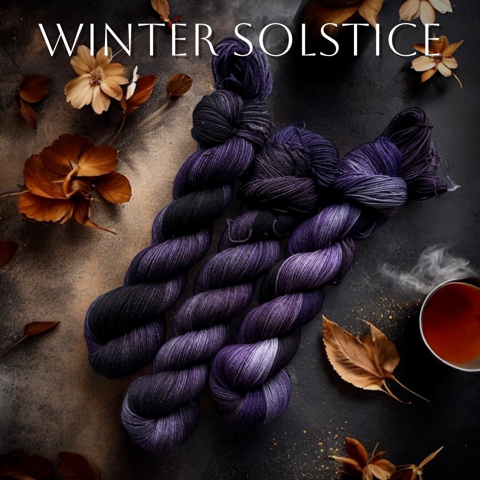 Embrace the darkest, most magical night of the year with Winter Solstice yarn—a color that captures the mystery and majesty of the season's turning point. This captivating fiber celebrates the balance between shadow and light, making it ideal for crafters who crave depth and drama in their makes. Perfect for creating cozy winter layers, mystical accessories, or statement pieces that command attention, Winter Solstice yarn invites you to knit and crochet your way through the season's most enchanting moments. Let the longest night inspire your next creative adventure. These all pair nicely with the tonal sets.